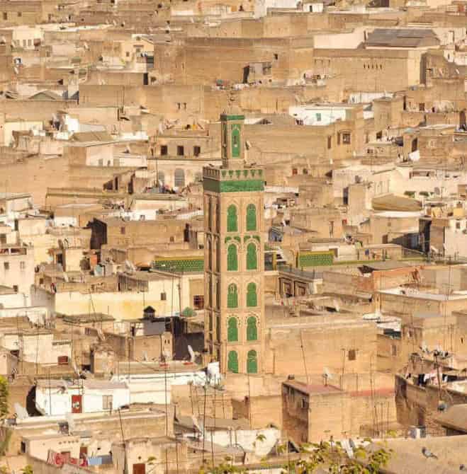 From this jewel and through the Mellah with its intense atmosphere, we leave the fine examples of Mauro-Hispanic architecture to the southern Borj to experience the panoramic views of the old Medina Fes.